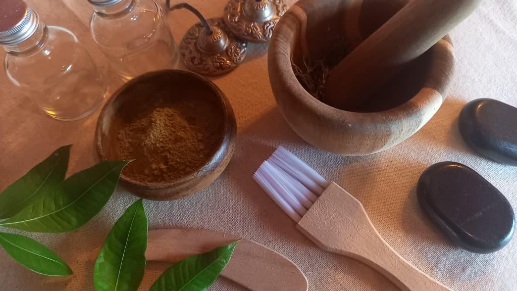 We offer Organic herbal therapy head spas and body massages using rare overseas herbs, aromas, and clay, as well as Chakra stone, sound, Pranayama breathing technique lessons, and Mantra/meditation lessons.