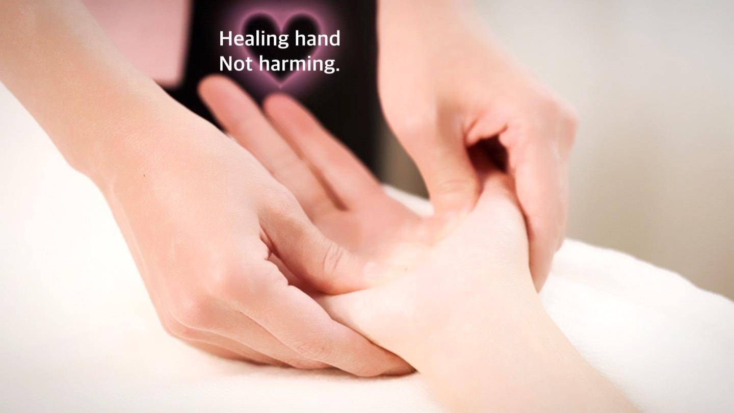 "Healing hands, not harming"